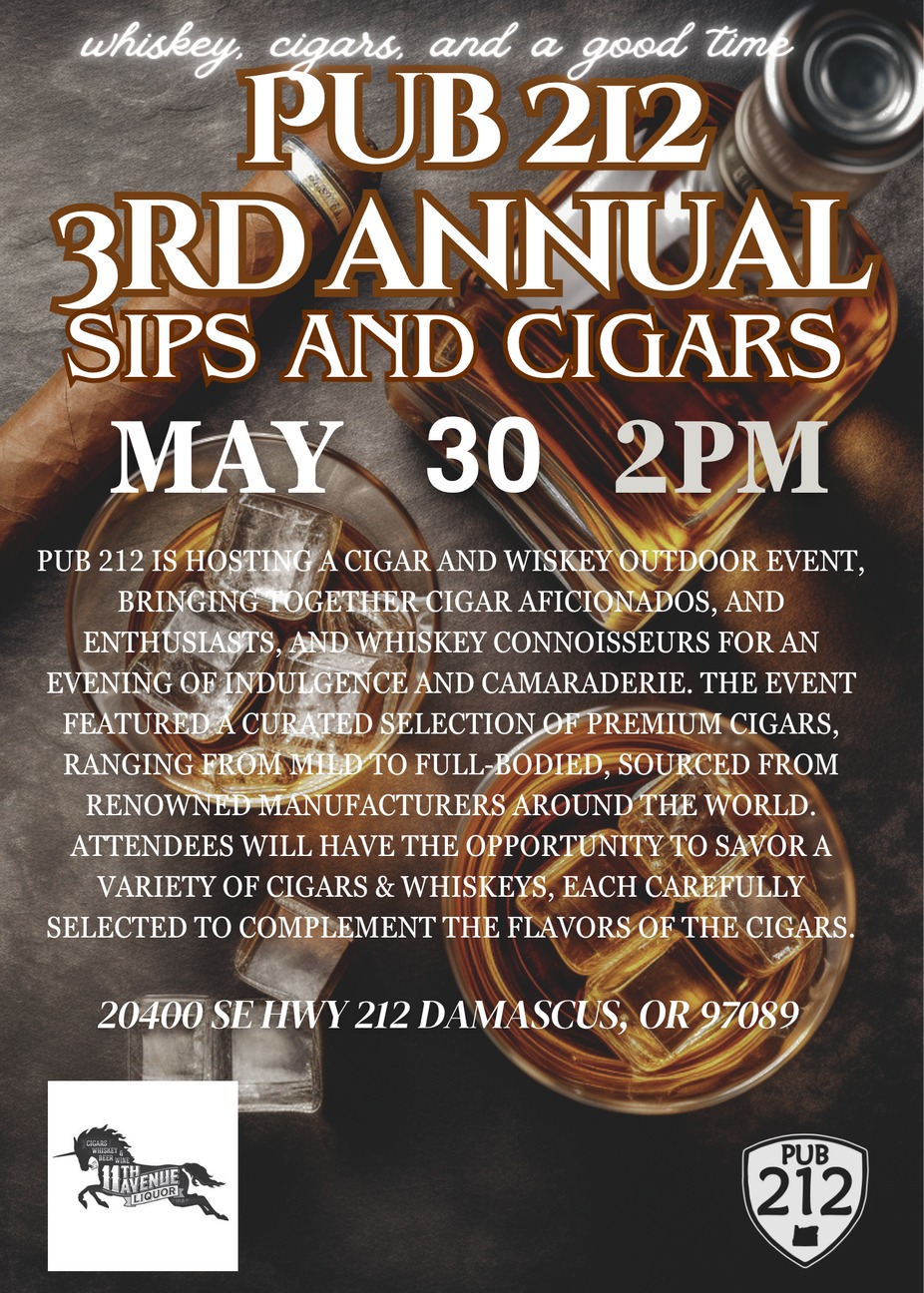 Pub 212 is hosting a cigar and whiskey outdoor event, bringing together cigar aficionados, and enthusiasts, and whiskey connoisseurs for an evening of indulgence and camaraderie. The event featured a curated selection of premium cigars, ranging from mild to full-bodied, sourced from renowned manufacturers around the world. Attendees will have the opportunity to savor a variety of Cigars & whiskeys, each carefully selected to complement the flavors of the cigars.